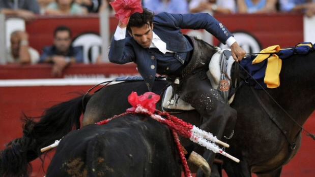 Al iniciar el segundo tercio con OJEDA, el toro se lesionó la mano izquierda, que además de dificultar la lidia, hacía prácticamente imposible el lucimiento. Mala suerte, en una tarde de gran responsabilidad y con los tendidos llenos de un público con muchas ganas de disfrutar de un soberbio espectáculo de rejoneo. A pesar de las dificultades, el rejoneador de Tarancón, no dejó de intentarlo. Con OJEDA puso dos banderillas y a continuación montó a APOLO, con el que colocó un grandioso par a dos manos, teniendo en cuenta la poca colaboración del toro mermado de facultades. La faena se ponía muy cuesta arriba, pero en estas circunstancias, también hay que demostrar la responsabilidad con el público, como hoy lo ha hecho en Albacete Sergio Galán.