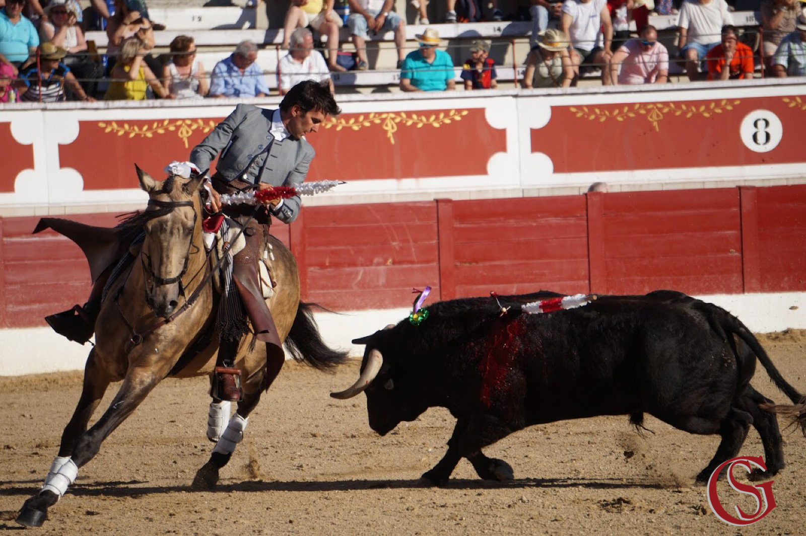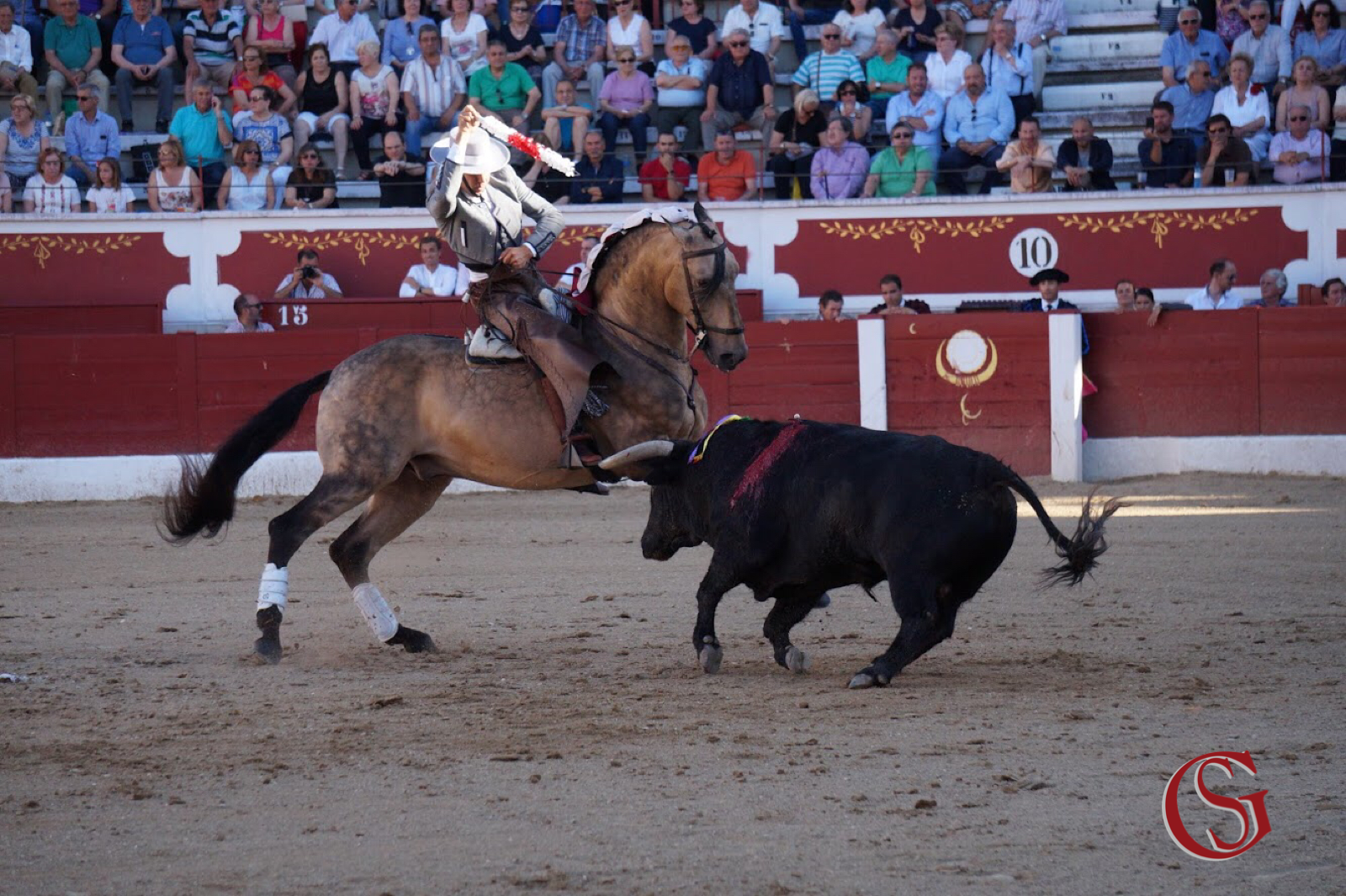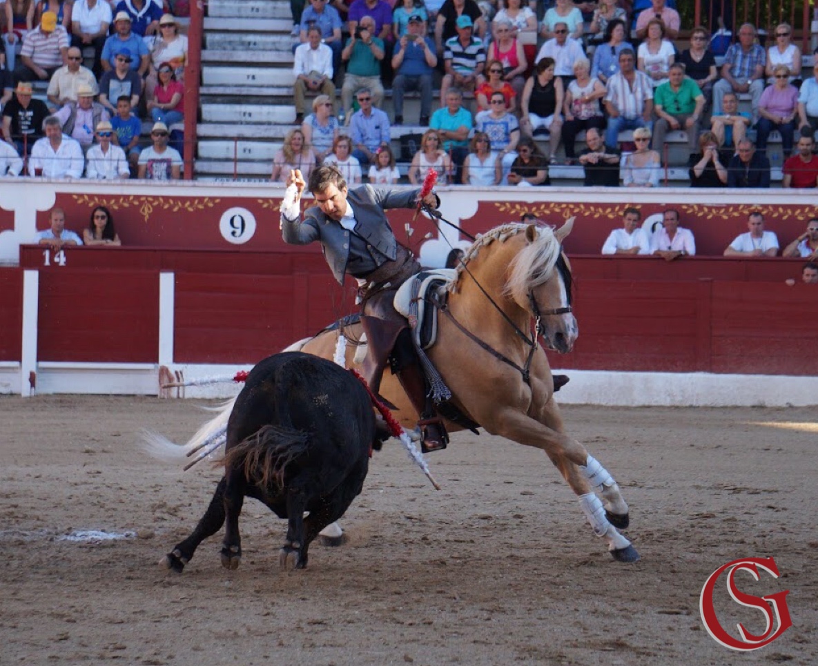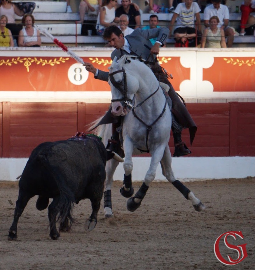 Sergio Galán, un día más, abría cartel. Y plaza. A lomos de Amuleto empuñaba el primer rejón de castigo de la tarde que colocaría a un toro de Benítez Cubero. Un animal negro de capa que ya anunciaría la poca fuerza que tendría el encierro. Trópico colocaría los dos primeros palos. Ambos al quiebro, provocando la arrancada del toro con un definido tierra a tierra para despedirse, muy torero, en piafe. Salía entonces Titán. Ya sabemos cómo: decidido. Caballo y jinete. Para calentar al tendido con una pirueta. Y dos. A este primer toro le faltan ahora tres banderillas cortas que ponía en los medios, con Óleo, antes de finalizar con un rejonazo que ponía una merecida oreja en manos del rejoneador.